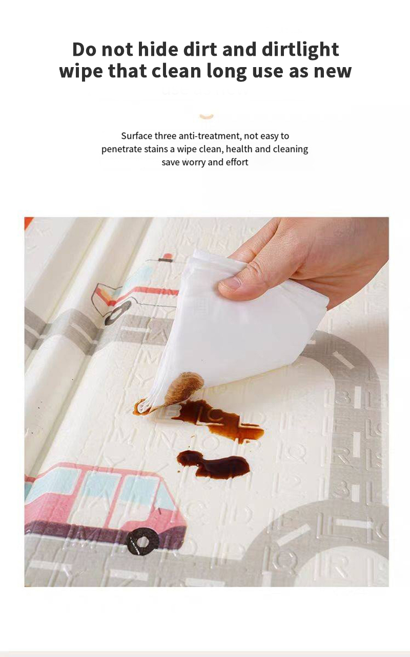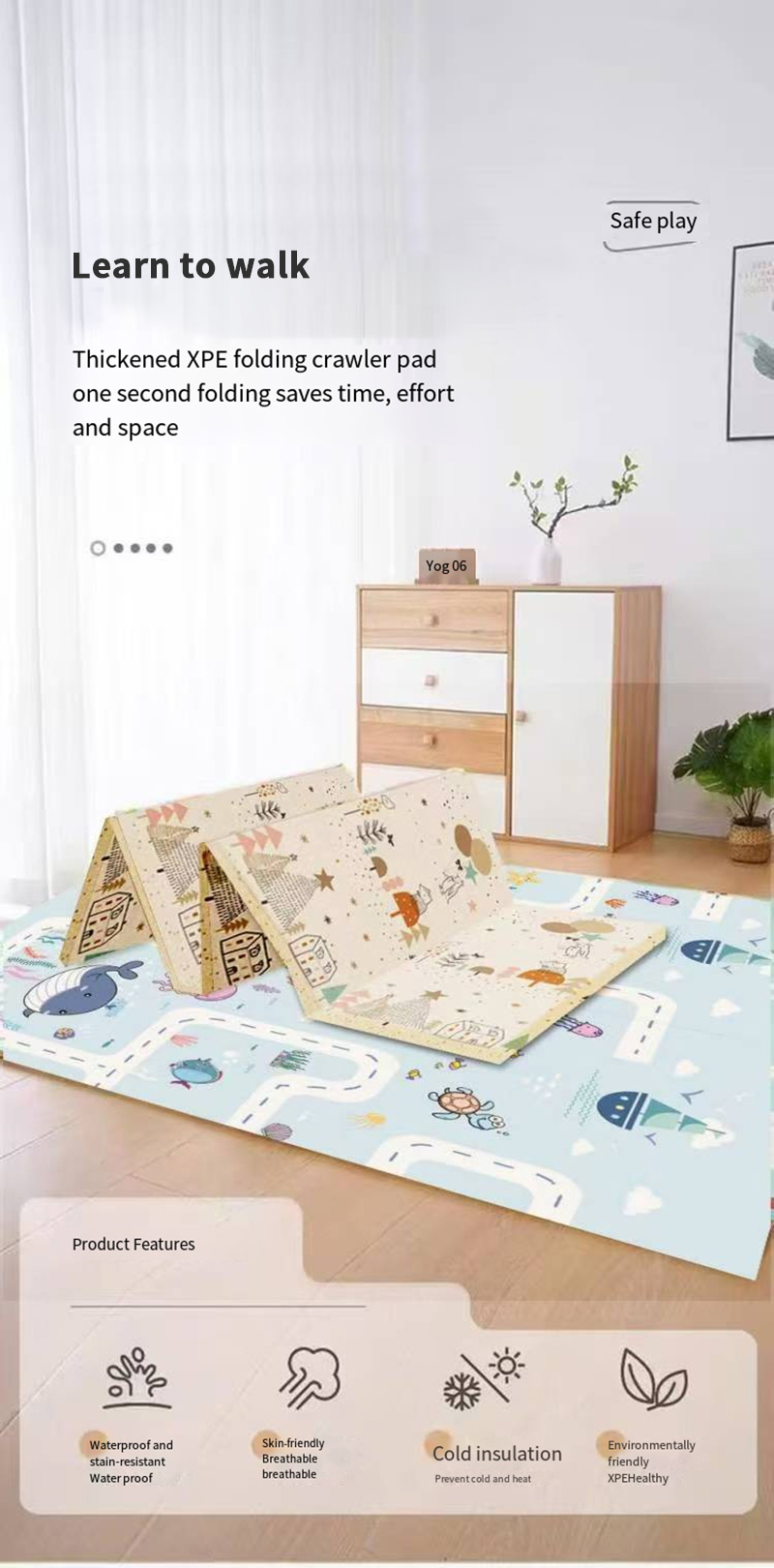 พรมปูพื้นฟิล์มเคลือบรุ่น XPE แบบพับได้ในครัวเรือนพิมพ์บนฟิล์มเคลือบ PE ฟิล์มเคลือบสามารถกำจัดมลภาวะทางแสงได้อย่างมีประสิทธิภาพและสีที่ละเอียดอ่อนไม่รุนแรง สามารถพับเก็บได้อย่างรวดเร็ว ประหยัดเวลาและพื้นที่